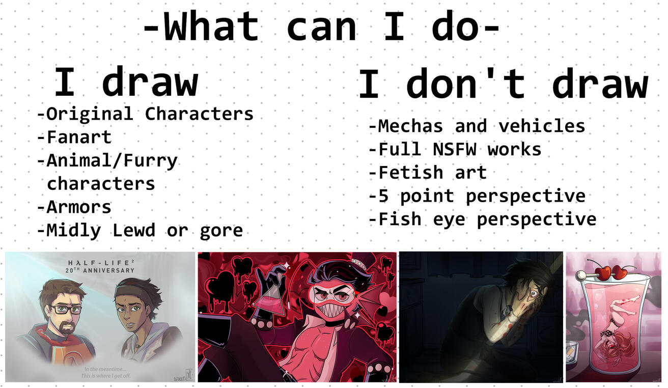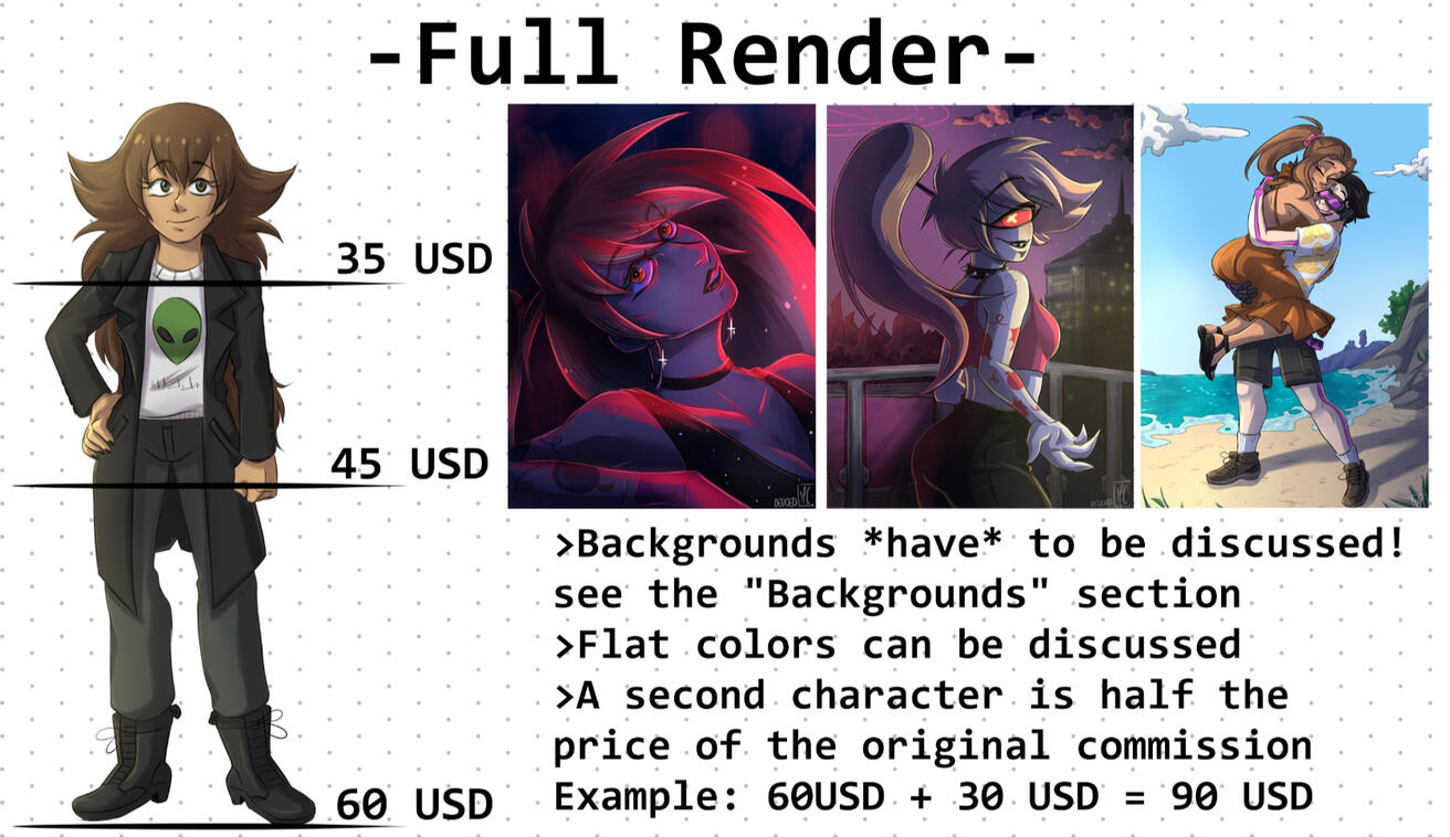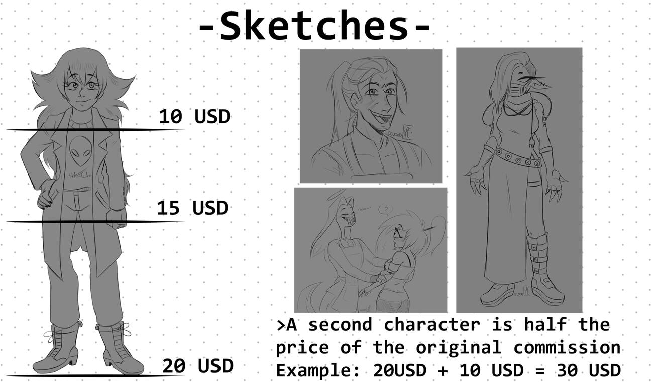 1. I, the artist, have the right to refuse a commission.2. All commissioned artwork are for personal use only. You, as the client, are not allowed to resell it. For commercial right, we'll have to discussed it.3. I own all the art commissioned, and I can post it on my social media. If you want, I can leave you as an anonymous client or tag you.4. After the sketch is finalized and approved, you have to pay 50% of the full price (for full render/backgrounds). When the commission is finished, you pay the rest of the fees.5. You, as the client, must provide visual references for the artwork (character designs, poses, ilumination, etc). If not, you have to be very clear with your words.6. Please be patient when commissioning me! I'm fast, but not that fast!8. Payment can be done through Paypal or Ko-fi. If you are from Chile, we can discuss other payment options.7. By commissioning me, you accept these terms of service.